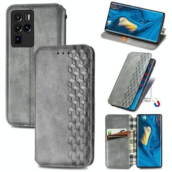 For ZTE Axon 30 5G Cubic Grid Pressed Horizontal Flip Magnetic PU Leather Case with Holder & Card Slots & Wallet(Grey)