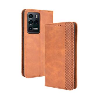 For ZTE Axon 30 Ultra 5G Magnetic Buckle Retro Crazy Horse Texture Horizontal Flip Leather Case with Holder & Card Slots & Photo Frame(Brown)