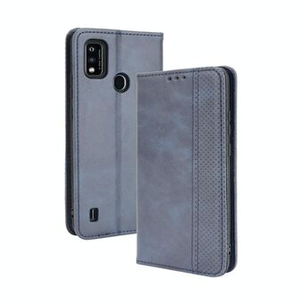 For ZTE Blade A51 Magnetic Buckle Retro Crazy Horse Texture Horizontal Flip Leather Case with Holder & Card Slots & Photo Frame(Blue)