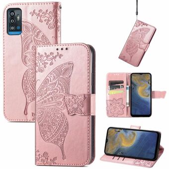 Butterfly Love Flowers Embossed Horizontal Flip Leather Case with Holder & Card Slots & Wallet & Lanyard For ZTE Blade A51(Rose Gold)