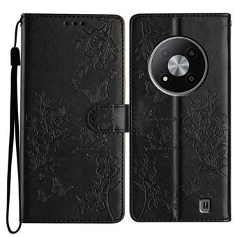 For ZTE Blade A73 5G Butterflies and Flowers Leather Phone Case(Black)