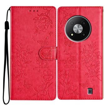 For ZTE Blade A73 5G Butterflies and Flowers Leather Phone Case(Red)