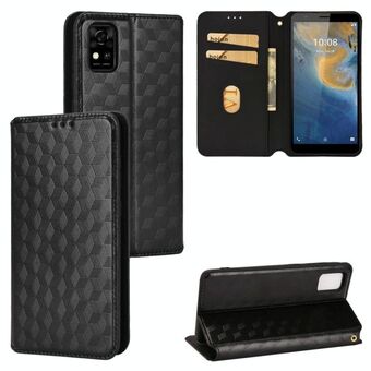 For ZTE Blade A52 Cubic Grid Texture Flip Leather Phone Case(Black)