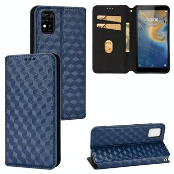 For ZTE Blade A35 / A55 Cubic Grid Texture Flip Leather Phone Case(Blue)