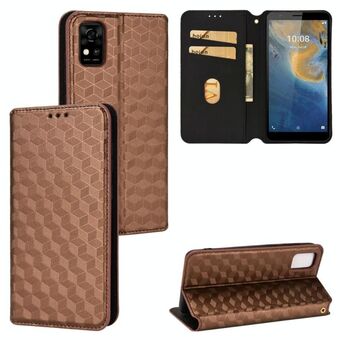 For ZTE Blade A35 / A55 Cubic Grid Texture Flip Leather Phone Case(Brown)