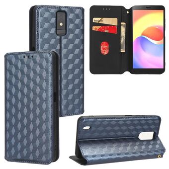 For ZTE Blade A52 Cubic Grid Texture Flip Leather Phone Case(Blue)