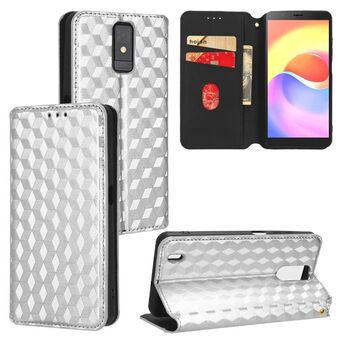 For ZTE Blade A33s Cubic Grid Texture Flip Leather Phone Case(Silver)