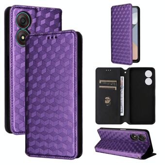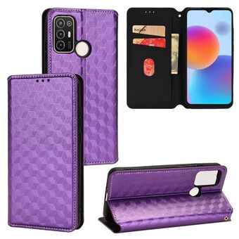 For ZTE Blade A52 Cubic Grid Texture Flip Leather Phone Case(Purple)