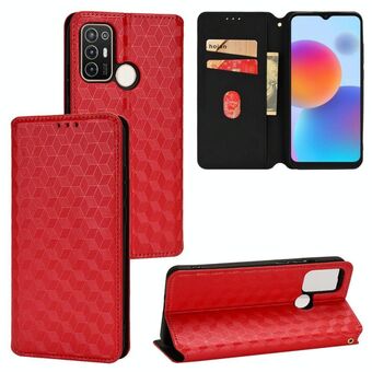 For ZTE Blade A52 Cubic Grid Texture Flip Leather Phone Case(Red)