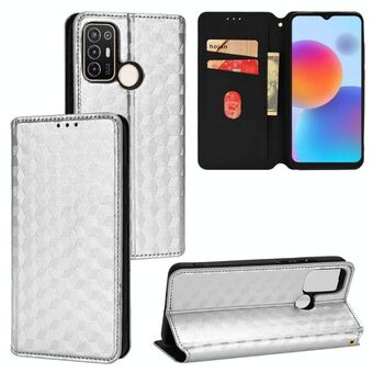 For ZTE Blade A52 Cubic Grid Texture Flip Leather Phone Case(Silver)