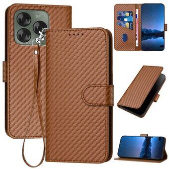 For ZTE Blade V70 Design YX0070 Carbon Fiber Buckle Leather Phone Case with Lanyard(Coffee)