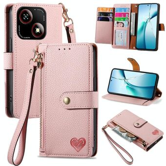 Θήκη τηλεφώνου δερμάτινη με λουρί για ZTE Blade A35e 4G Love Zipper (Καφέ)