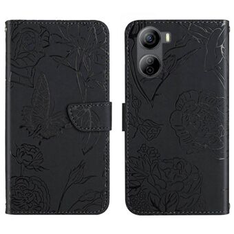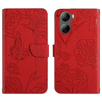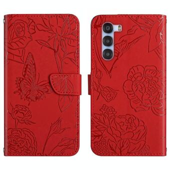 Θήκη τηλεφώνου από δέρμα με ανάγλυφο σχέδιο πεταλούδας και παιώνιας για ZTE nubia S 5G A403ZT (Κόκκινο)