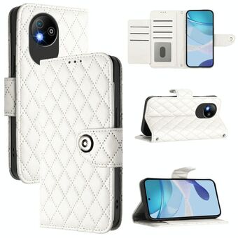 For ZTE Blade A35 Lite Rhombic Texture Flip Leather Phone Case with Lanyard(White)