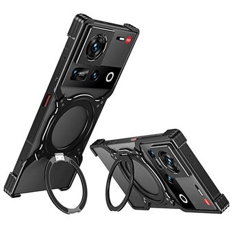 For ZTE nubia Z70 Ultra Mechanical Arm Borderless MagSafe Holder Metal Phone Case(Black Red)