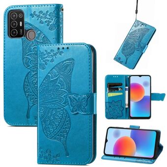 For ZTE Blade A52 Butterfly Love Flower Embossed Leather Phone Case(Blue)