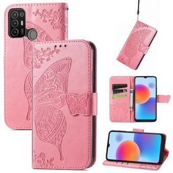 For ZTE Blade A52 Butterfly Love Flower Embossed Leather Phone Case(Pink)