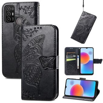For ZTE Blade A52 Butterfly Love Flower Embossed Leather Phone Case(Black)