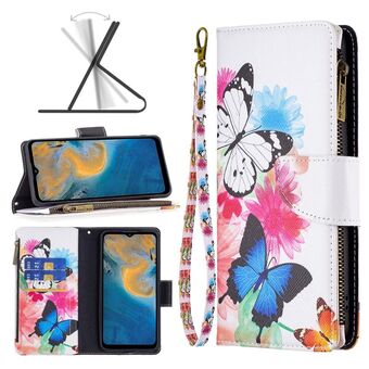 Θήκη τηλεφώνου από δέρμα με φερμουάρ και πολύχρωμο σχέδιο για ZTE Blade A51 (Μεγάλη Πεταλούδα)