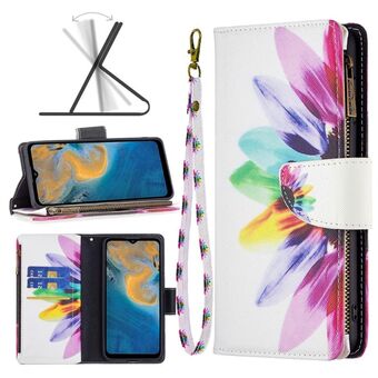 Θήκη τηλεφώνου από δέρμα με φερμουάρ και πολύχρωμο σχέδιο για ZTE Blade A51 (Ηλιάνθος)