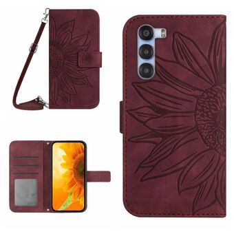 Για ZTE nubia S 5G A403ZT δέρμα αίσθηση Sun Flower μοτίβο δερμάτινη θήκη τηλεφώνου με κορδόνι (Rose Red)