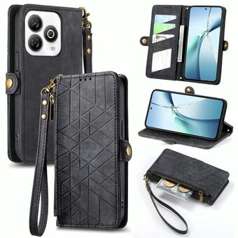 For ZTE Blade A75 4G Geometric Zipper Wallet Side Buckle Leather Phone Case(Black)