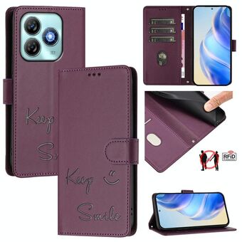 For ZTE Blade A35 Lite Smile Embossing RFID Leather Phone Case(Violet)