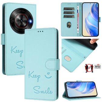 For ZTE Blade A35 Lite Smile Embossing RFID Leather Phone Case(Mint Green)