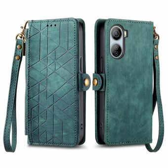 For ZTE Blade A34 Geometric Zipper Wallet Side Buckle Leather Phone Case(Green)