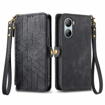 For ZTE Blade A34 Geometric Zipper Wallet Side Buckle Leather Phone Case(Black)