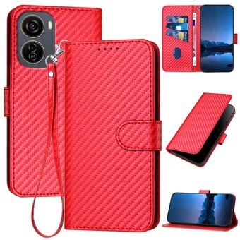 For ZTE Blade V41 Smart YX0070 Carbon Fiber Buckle Leather Phone Case with Lanyard(Red)