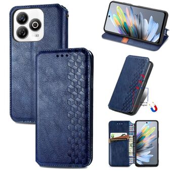 For ZTE Blade A75 4G Cubic Grid Pressed Magnetic Leather Phone Case(Blue)