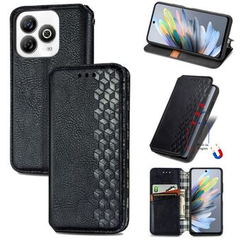 For ZTE Blade A75 4G Cubic Grid Pressed Magnetic Leather Phone Case(Black)