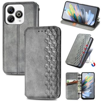 For ZTE Blade A75 4G Cubic Grid Pressed Magnetic Leather Phone Case(Gray)