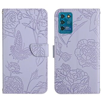 For ZTE Blade V30 Vita Skin Feel Butterfly Peony Embossed Leather Phone Case(Purple)