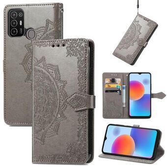 Για ZTE Blade A52 Mandala λουλούδι ανάγλυφο δερμάτινη θήκη τηλεφώνου (γκρι)