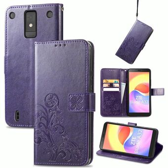 Για ZTE Blade A32 τετράφυλλο κούμπωμα ανάγλυφο αγκράφα δερμάτινη θήκη τηλεφώνου (μωβ)