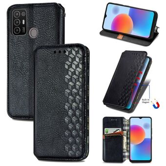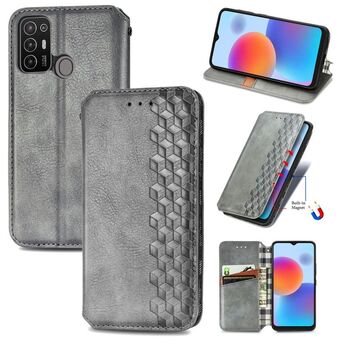 Για το ZTE Blade A52 Cubic Grid Pressed μαγνητική δερμάτινη θήκη τηλεφώνου (γκρι)