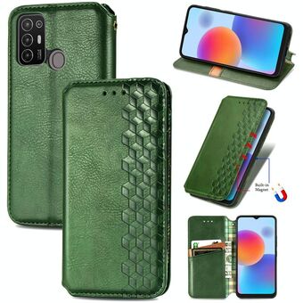 Για ZTE Blade A52 Cubic Grid πιεσμένο μαγνητικό δέρμα τηλέφωνο υπόθεση (πράσινο)