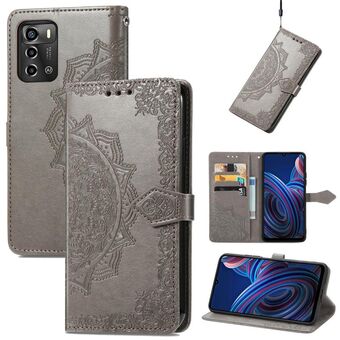 For ZTE Libero 5G III Mandala Flower Embossed Leather Phone Case(Gray)