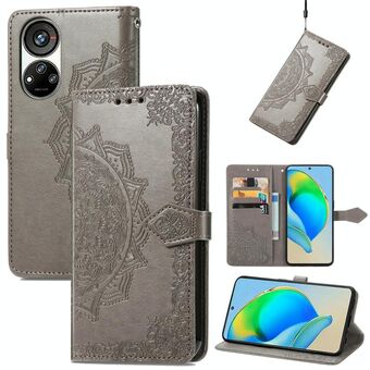 For TCL 40 SE Mandala Flower Embossed Leather Phone Case(Gray)
