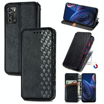 For ZTE Blade A72 4G Cubic Grid Pressed Magnetic Leather Phone Case(Black)