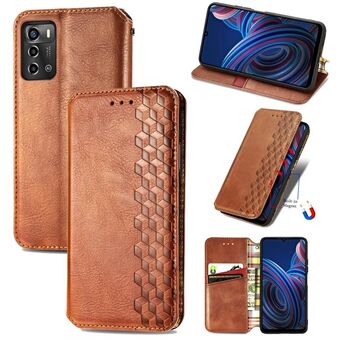 For ZTE Blade A72 4G Cubic Grid Pressed Magnetic Leather Phone Case(Brown)
