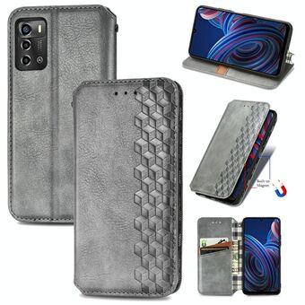 For ZTE Blade A72 4G Cubic Grid Pressed Magnetic Leather Phone Case(Gray)