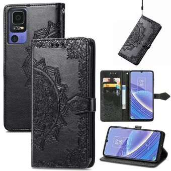 For TCL 40 SE Mandala Flower Embossed Leather Phone Case(Black)