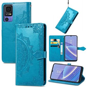 For TCL 40 SE Mandala Flower Embossed Leather Phone Case(Blue)